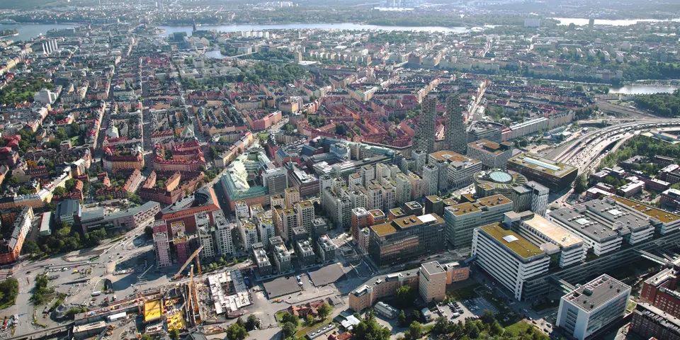 Med en kombination av bostäder, parker, torg och ett kunskapsintensivt näringsliv inom life science, växer Hagastaden fram ovanpå en överdäckning av motorvägar och järnväg, och kopplar samman Stockholm och Solna.