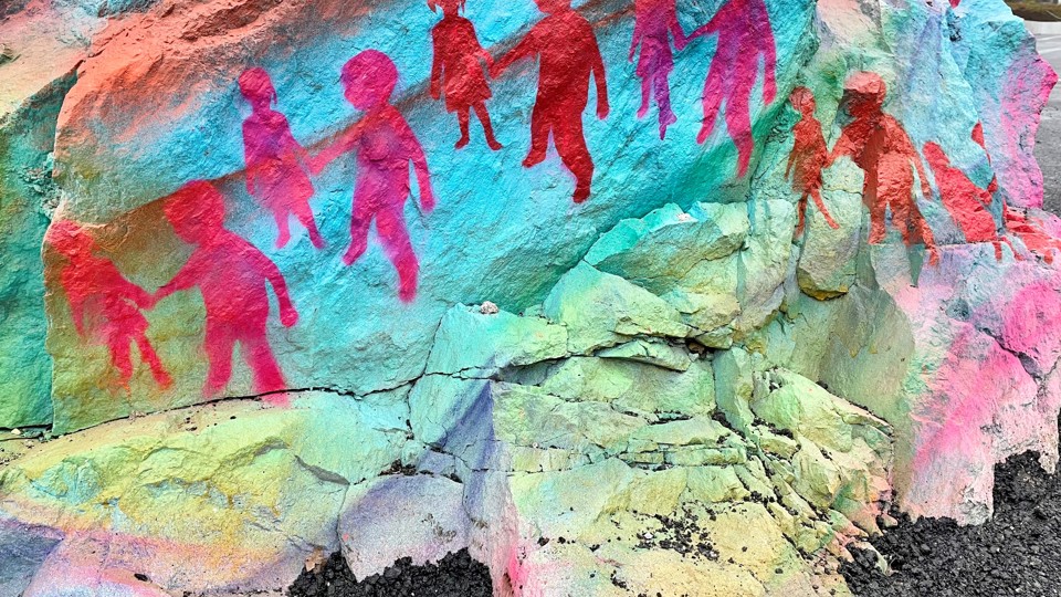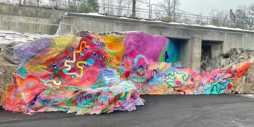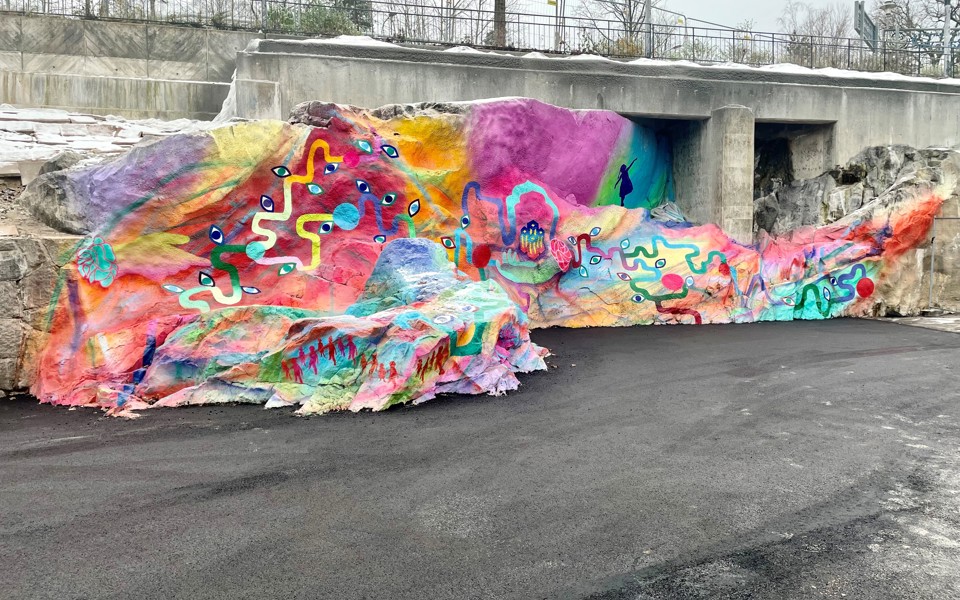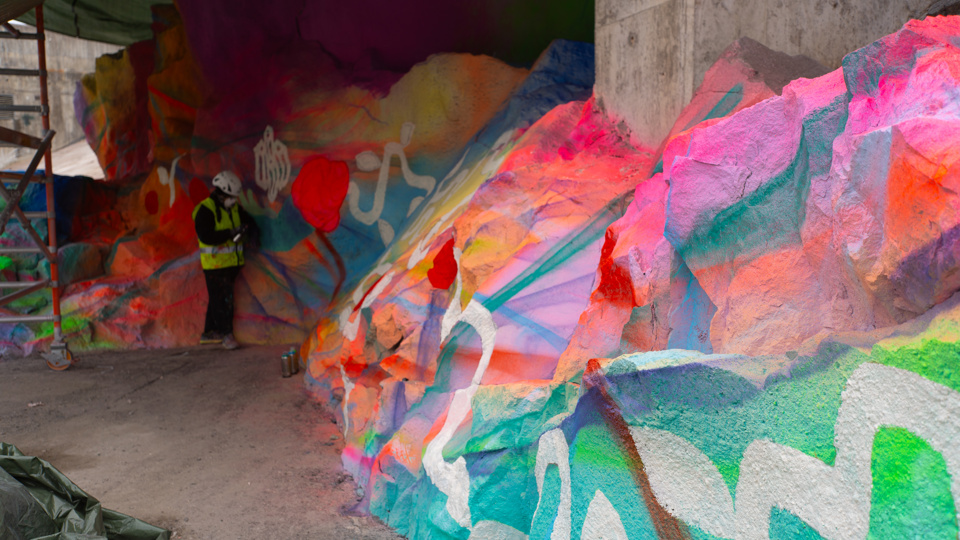 och symboler ville konstnären ladda bergsväggen med en ny positiv bild av