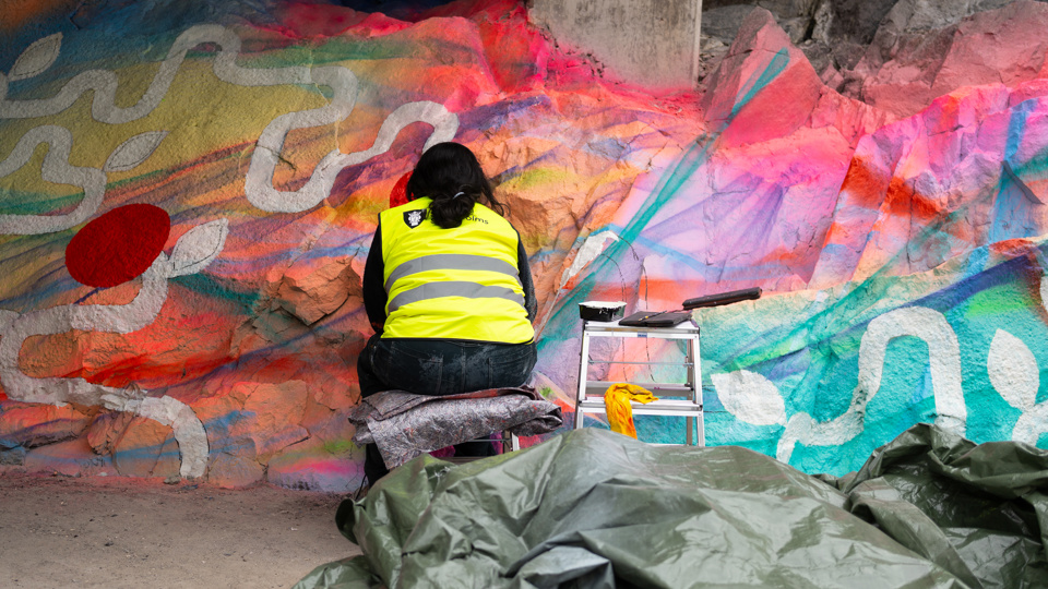 musik, värme och drömmar. Dessa ord bildade den emotionella grunden en grund för muralmålningen.