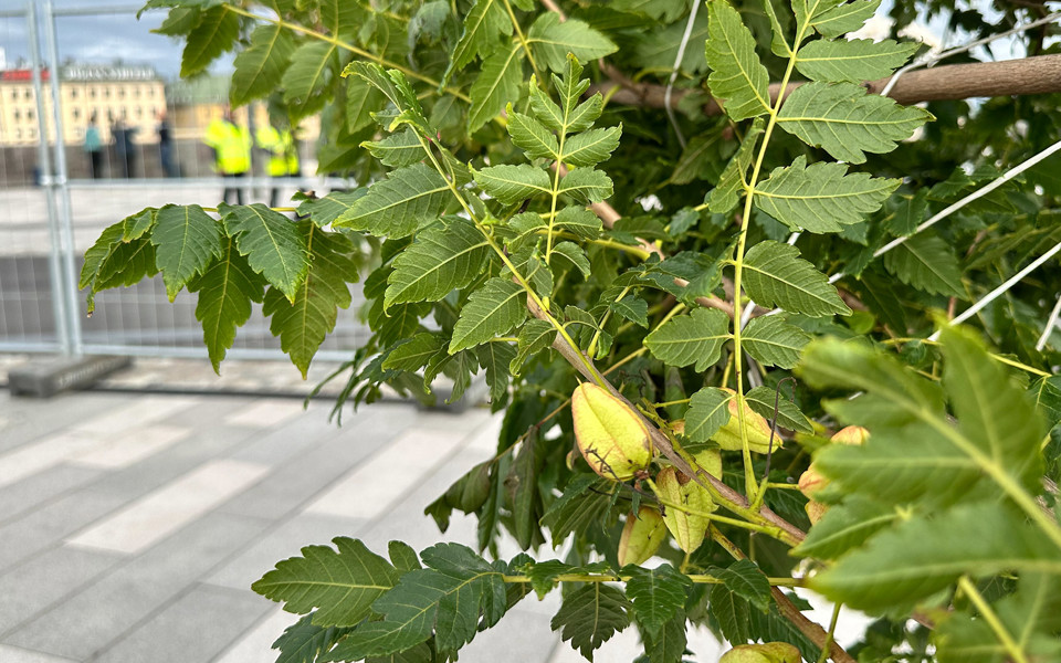 Träd i olika gröna nyanser, buskar och färgglada ängsblommor planteras vid nya Slussen.