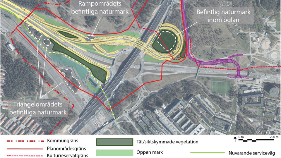 Syftet med den utbyggda trafiklösningen är en breddning av på- och avfarter kopplade till E18 och att bygga en ny väg i form av en ögla från Förbifart Stockholm till E18. Den nya trafiklösningen ska stärka kapaciteten i vägnätet som är ett riksintresse för kommunikation.