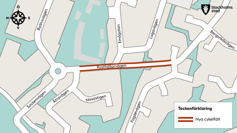 Nu anlägger staden cykelfält i båda riktningarna på Rusthållarvägen. Cykelfälten kommer att gå mellan Fogdevägen och den anslutande cykelvägen i korsningen med Ätravägen.