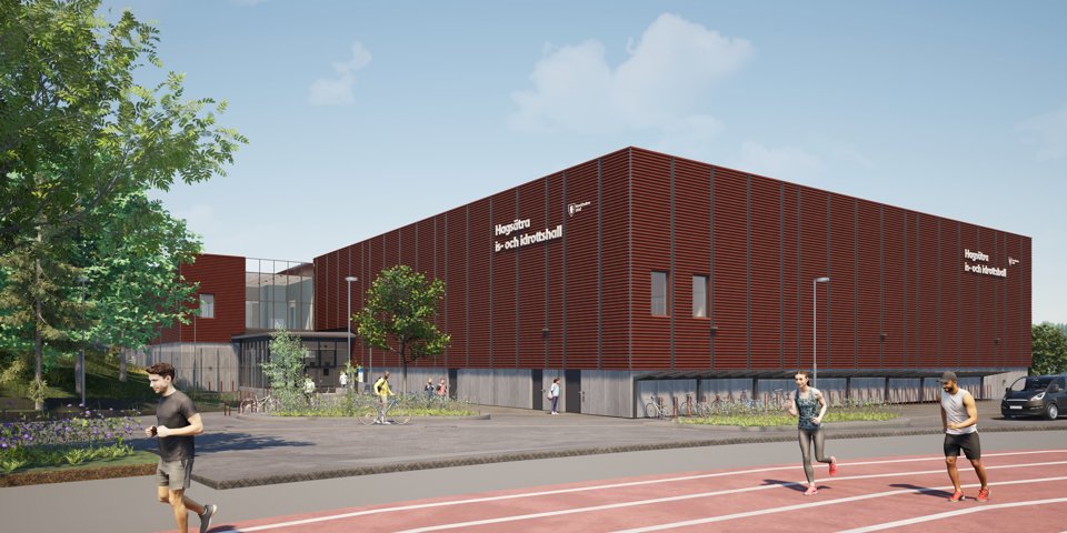 Idrottshallen, vy från Magelungsvägen. Bild: Metod arkitekter.