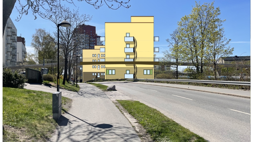 I förslaget ingår 64 bostäder, lokaler för centrumverksamhet och gruppbostäder, som är bostäder för den som har stora behov av stöd i boendet. Bostäderna planeras genom en påbyggnad på två befintliga byggnader och föreslås ha totalt fem bostadsvåningar. De nya husen utformas med liknande utseende som intilliggande bebyggelse.