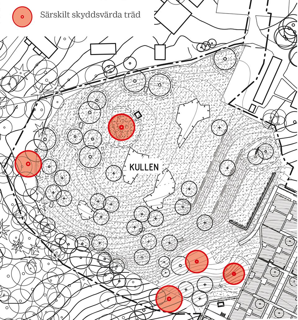 nivå, utan får sedan återgå till ett mer ursprungligt utseende, cirka en meter under befintlig markyta. Skyddsvärda träd sparas. Här planteras cirka 20 uppvuxna träd som flyttas från stadens gamla trädskola. Markytor planeras som äng. Arbeten pågår under 2025 och 2026, platsen planeras att öppnas under 2027.