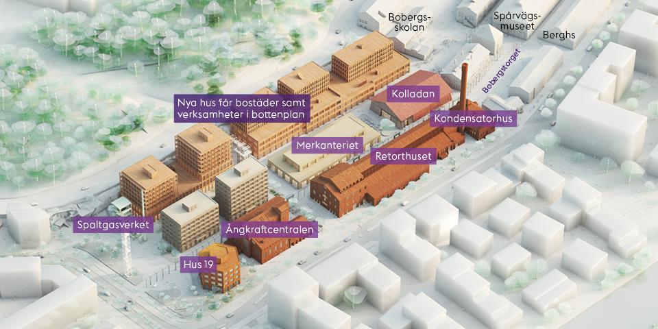 De flesta av de befintliga byggnaderna är blåklassade, vilket innebär den högsta nivån av kulturhistorisk skyddsklassning. Alla dessa byggnader bevaras. Men för att området ska kunna bli en stadsmiljö, behöver de anpassas till exempel med nya fönster och på så vis släppa in mer ljus i mörka fabrikslokaler. Några byggnader kommer inte att kunna bevaras och rivs för att ge plats åt nya byggnader och torgytor.