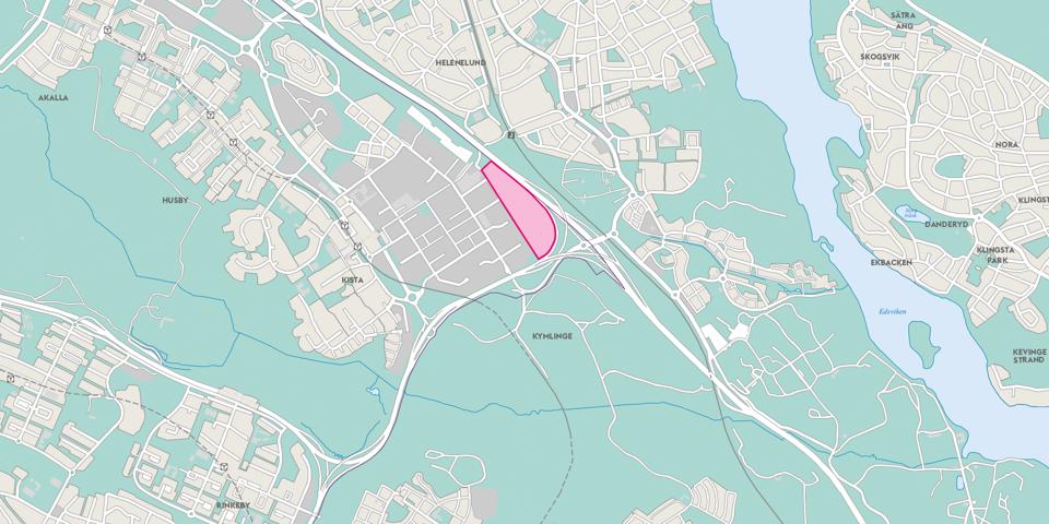 Akalla 4:1. Centret bedöms ha en utbredning på cirka tio hektar och avsikten är att centrets placering ska preciseras under detaljplaneprocessen.