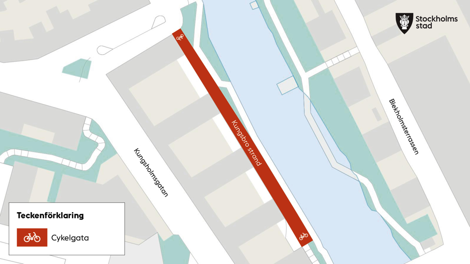 På Kungsbro strand bygger staden en cykelgata för att förbättra och öka säkerheten för cyklister och gående. Vi breddar också cykelbanan på den norra delen av Serafimersstranden.