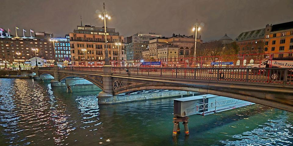 Cyklister rekommenderas att cykla över Skeppsbron och Norrbro.