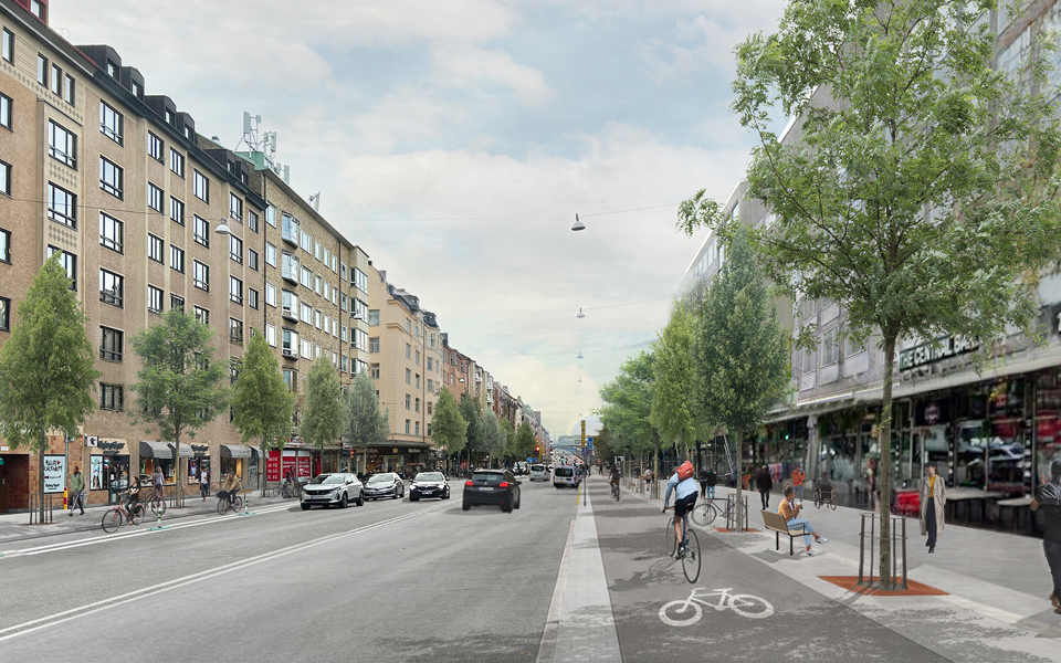 Bostäder och ny tunnelbanebyggnad längs Hornsbruksgatan