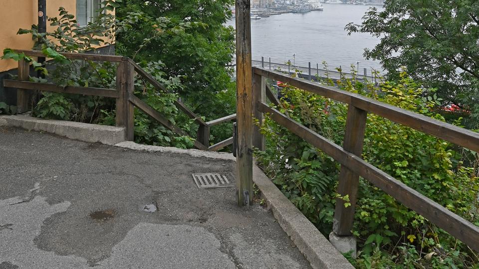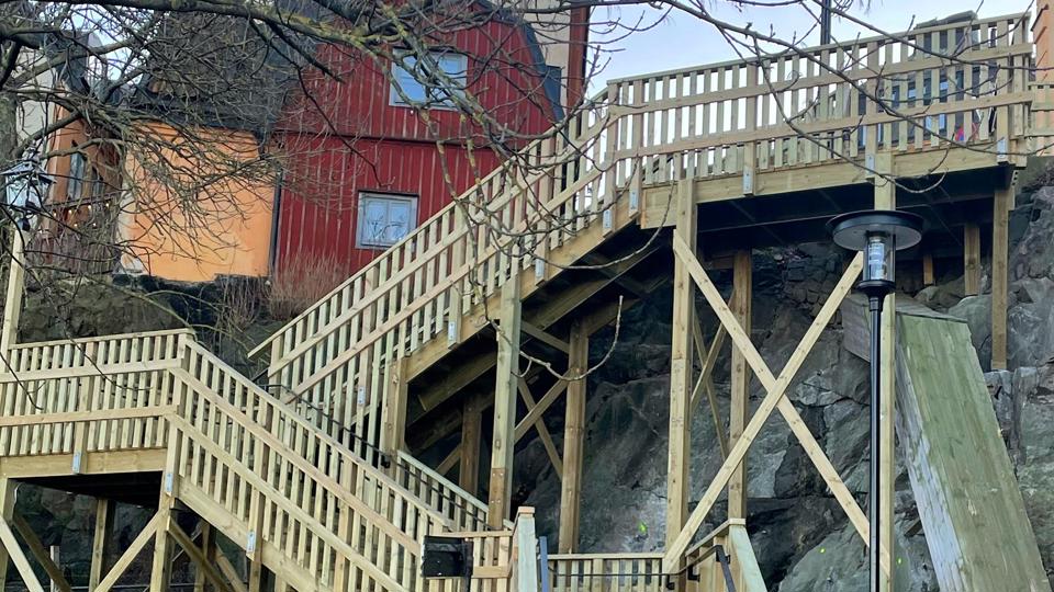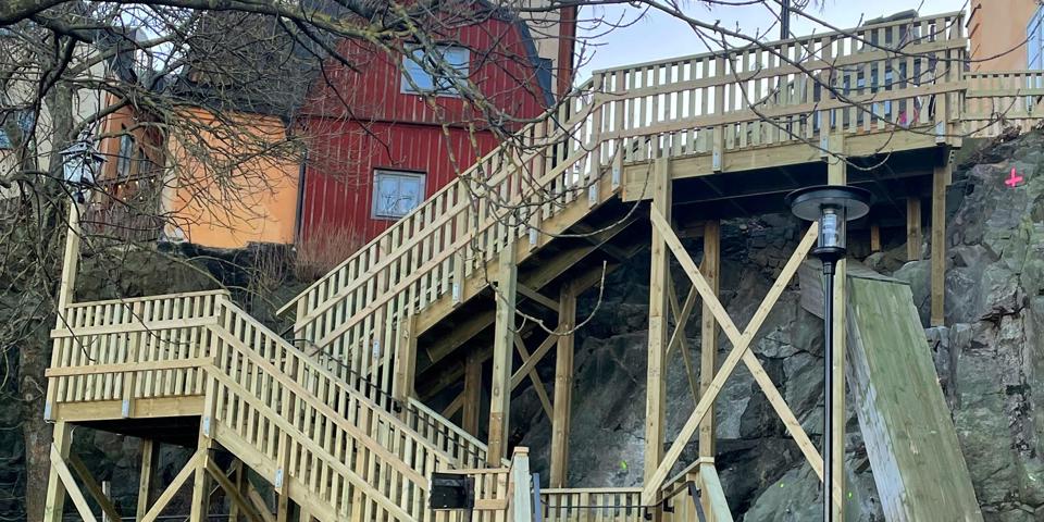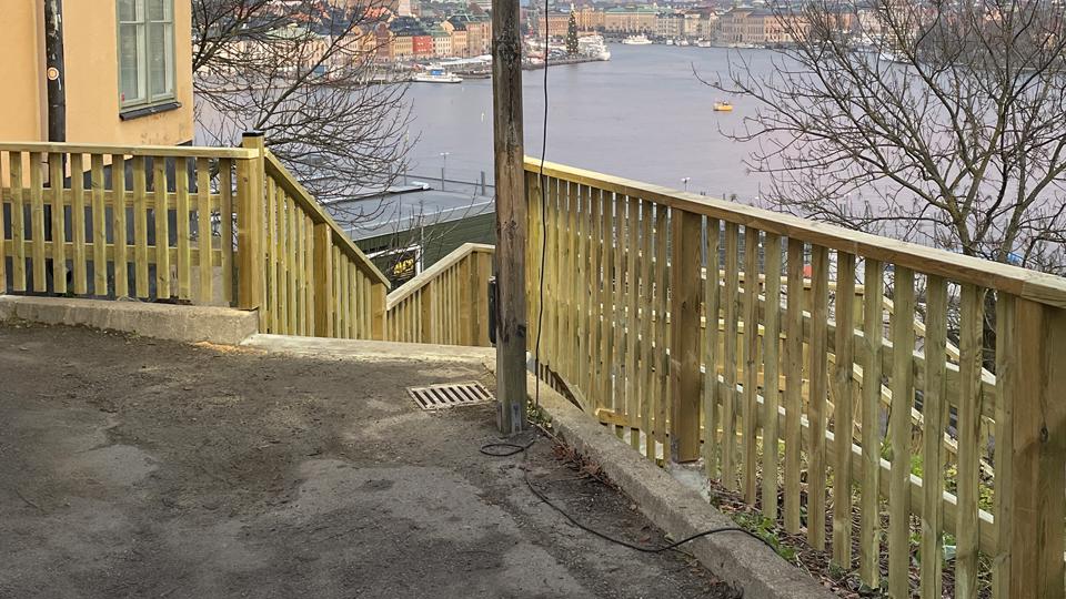 Trätrappan mellan Katarinavägen och Nytorgsgatan var i mycket dåligt skick. Nu har Stockholms stad byggt en ny trappa som också är mycket säkrare.