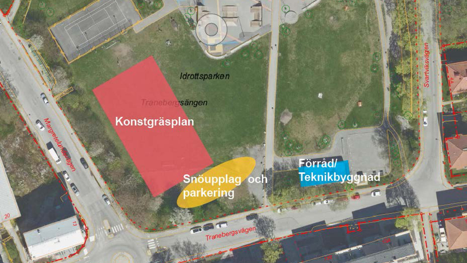 Detaljplanen syftar till att omvandla parkmark till kvartersmark för att möjliggöra en konstgräsplan och tillhörande idrottsfunktioner.