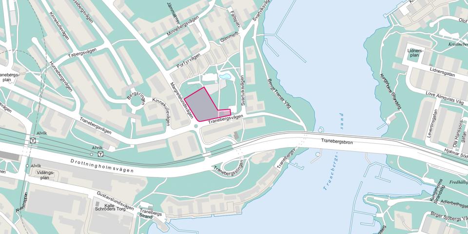 Planområdet ligger i Tranebergsängen och omfattar cirka 5 500 m² vid Margaretelundsvägen och Tranebergsvägen.