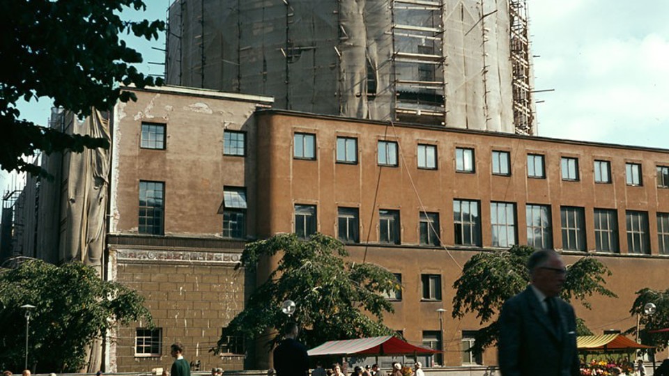 Vi utreder om snurrdörren i entrépartiet mot Sveavägen kan ersättas ett nytt dörrparti som liknar de ursprungliga dörrarna som satt där en gång i tiden.