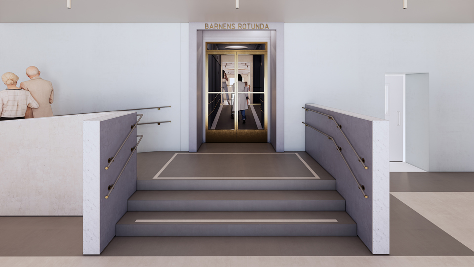 Vi bygger en ny barnavdelning för de allra minsta (0-6 år), så kallade Barnens rotunda, i det utrymme där boksorteringsmaskinen tidigare stod. Här bygger vi även en scen, lek- och multifunktionsrum samt informationsdisk.